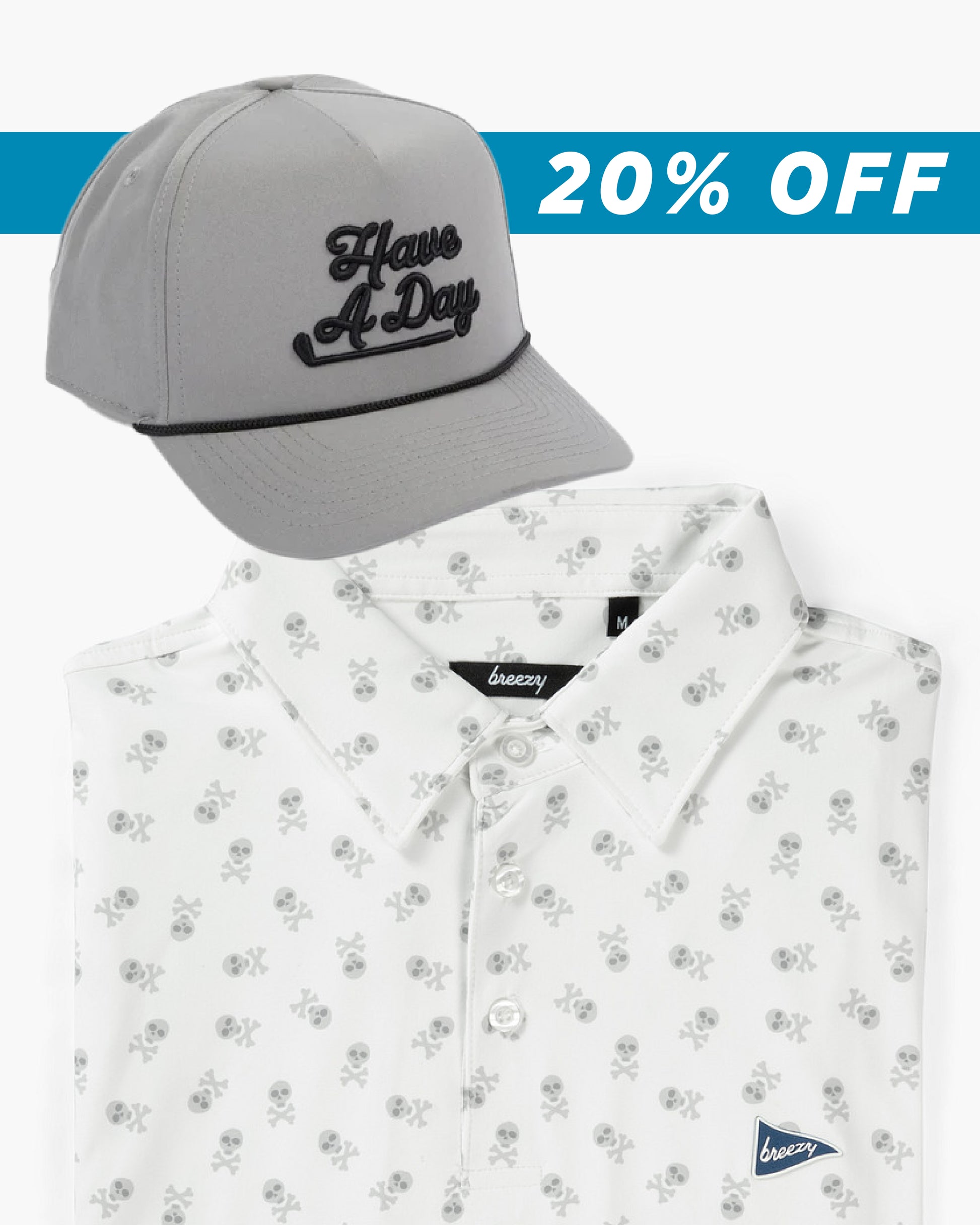 Sink chips, not ships, in the Jolly Roger Polo and Gray Rope Hat bundle - a pairing to treasure.