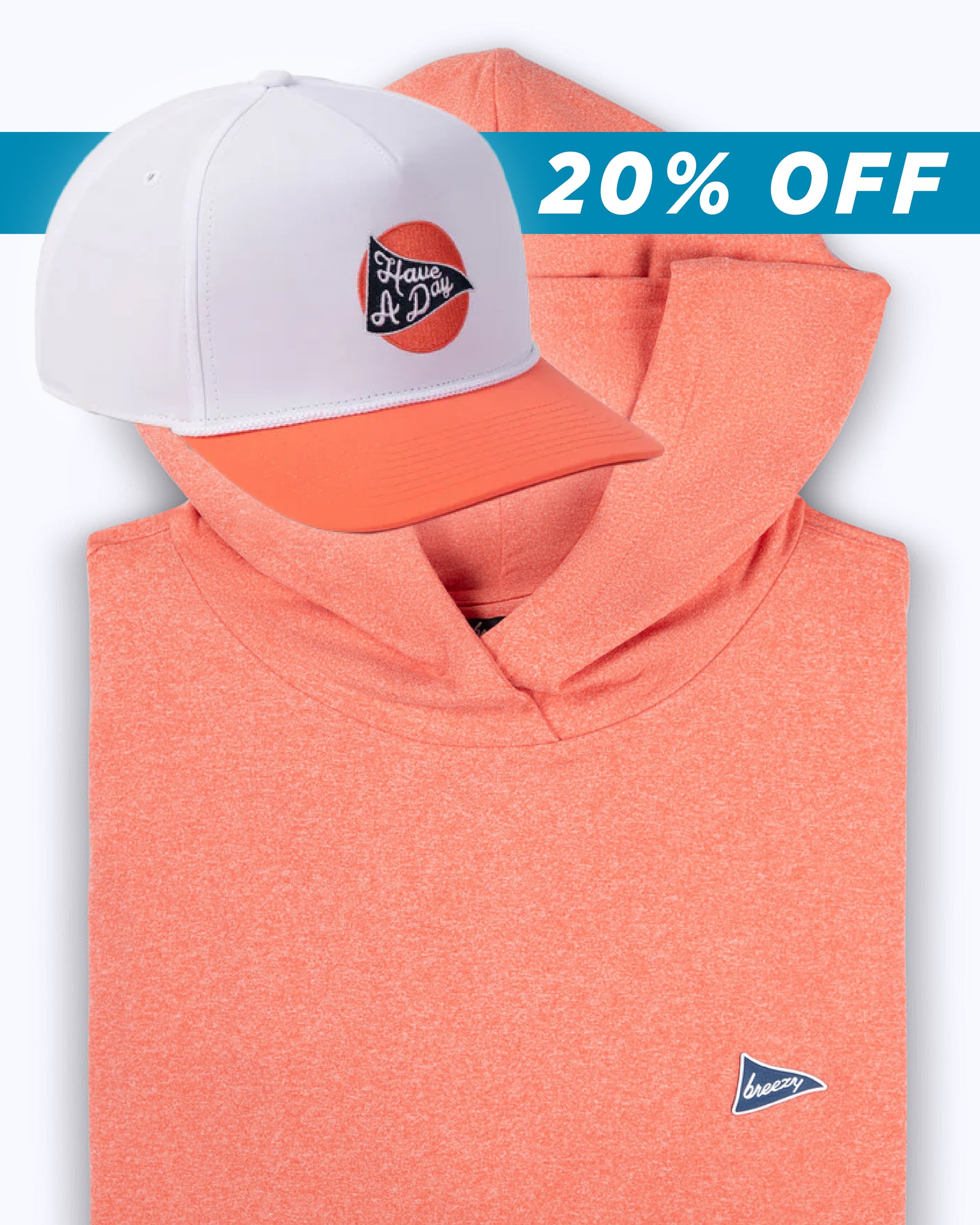 From the driving range to 19th hole, the Punch Drunk Bundle has you covered - a bold coral Hoodie with matching Have a Day Drink Hat.